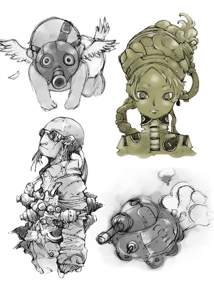 スケッチブックに描きめぐらされたらくがきの中から、なんか気になる絵だけスキャンして色つけたもの。